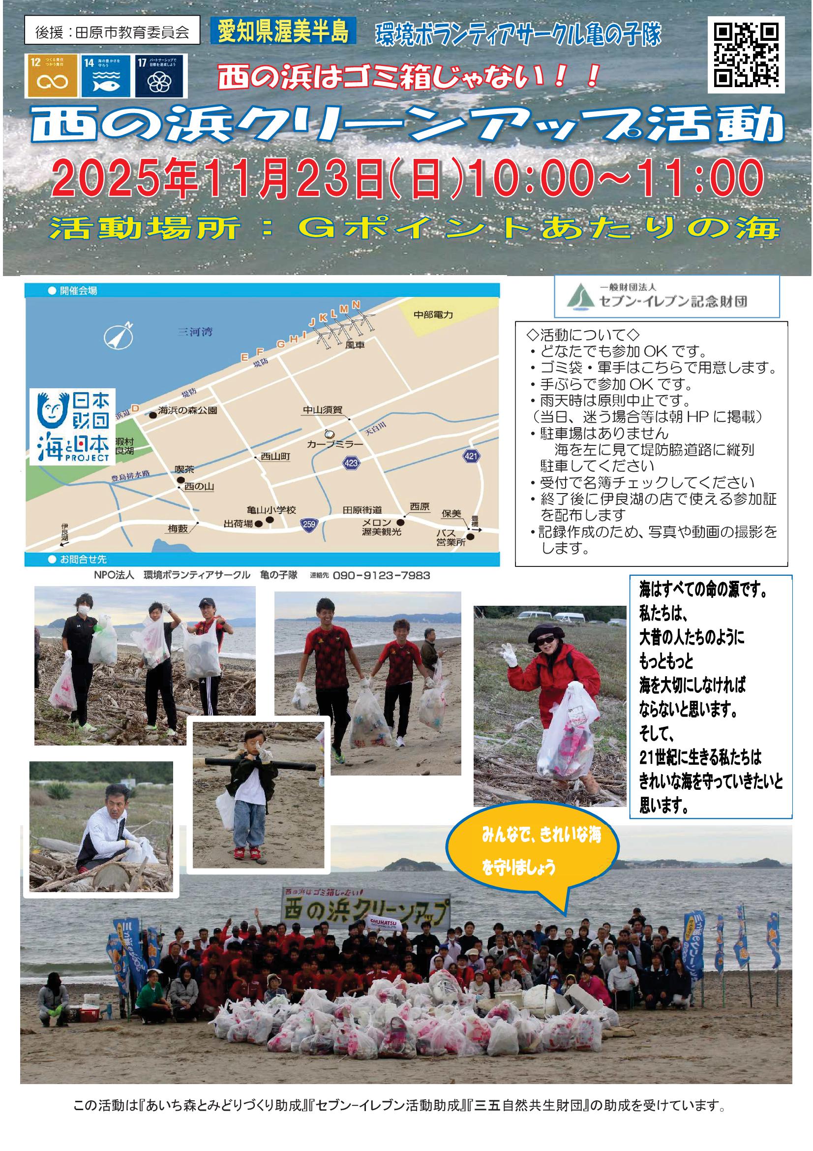 11月23日(日)勤労感謝の日 西の浜クリーンアップ活動 10:00~11:00