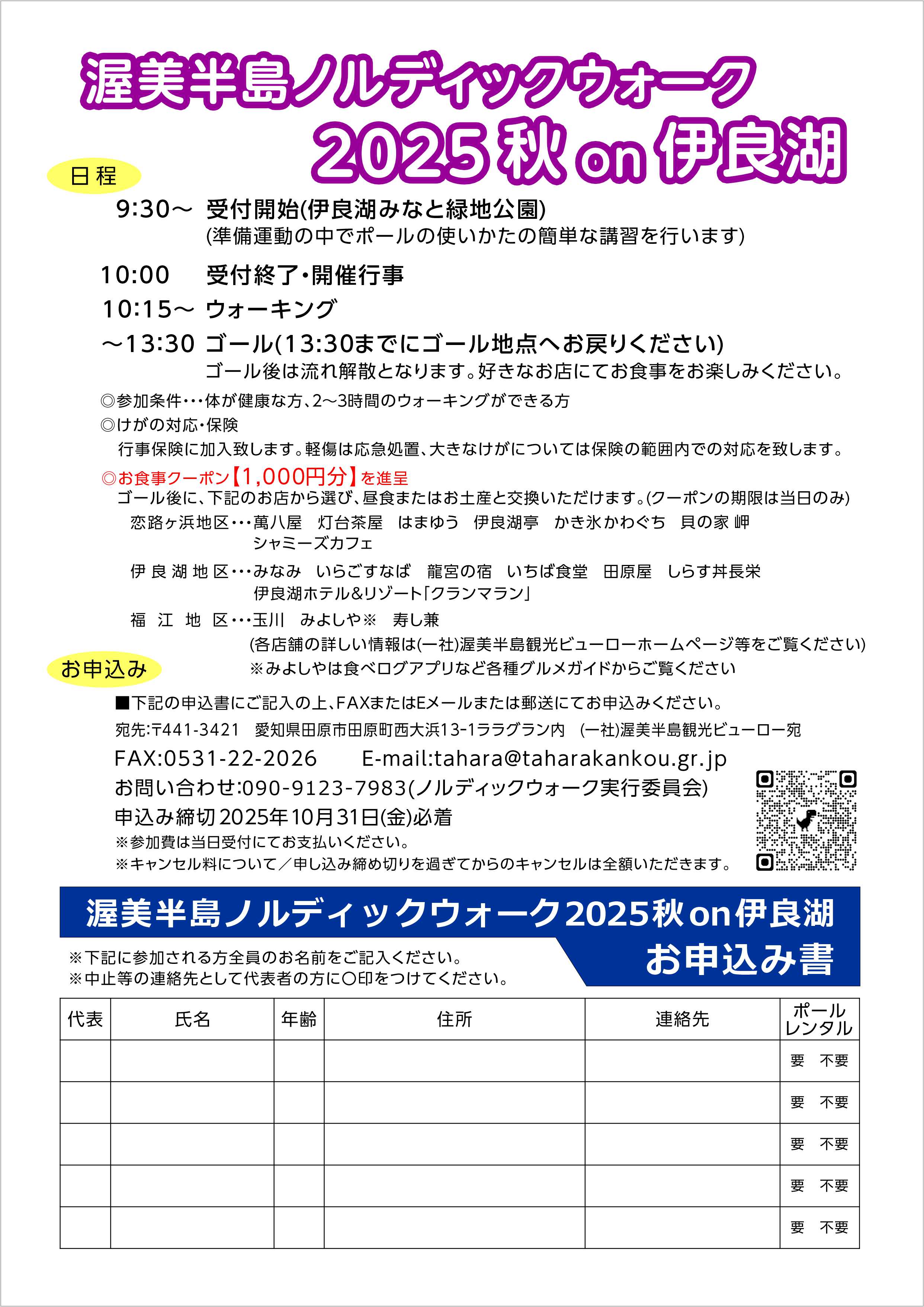 - 問合せ TEL090-9123-7983 (ノルディックウォーク実行委員会)