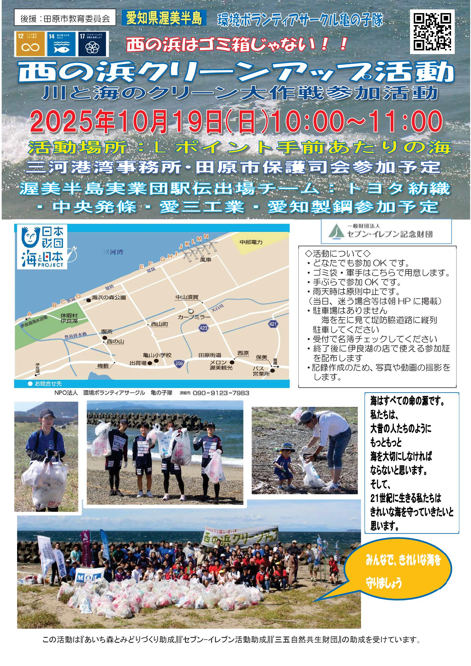 10月19日(日) 西の浜クリーンアップ活動10:00~11:00